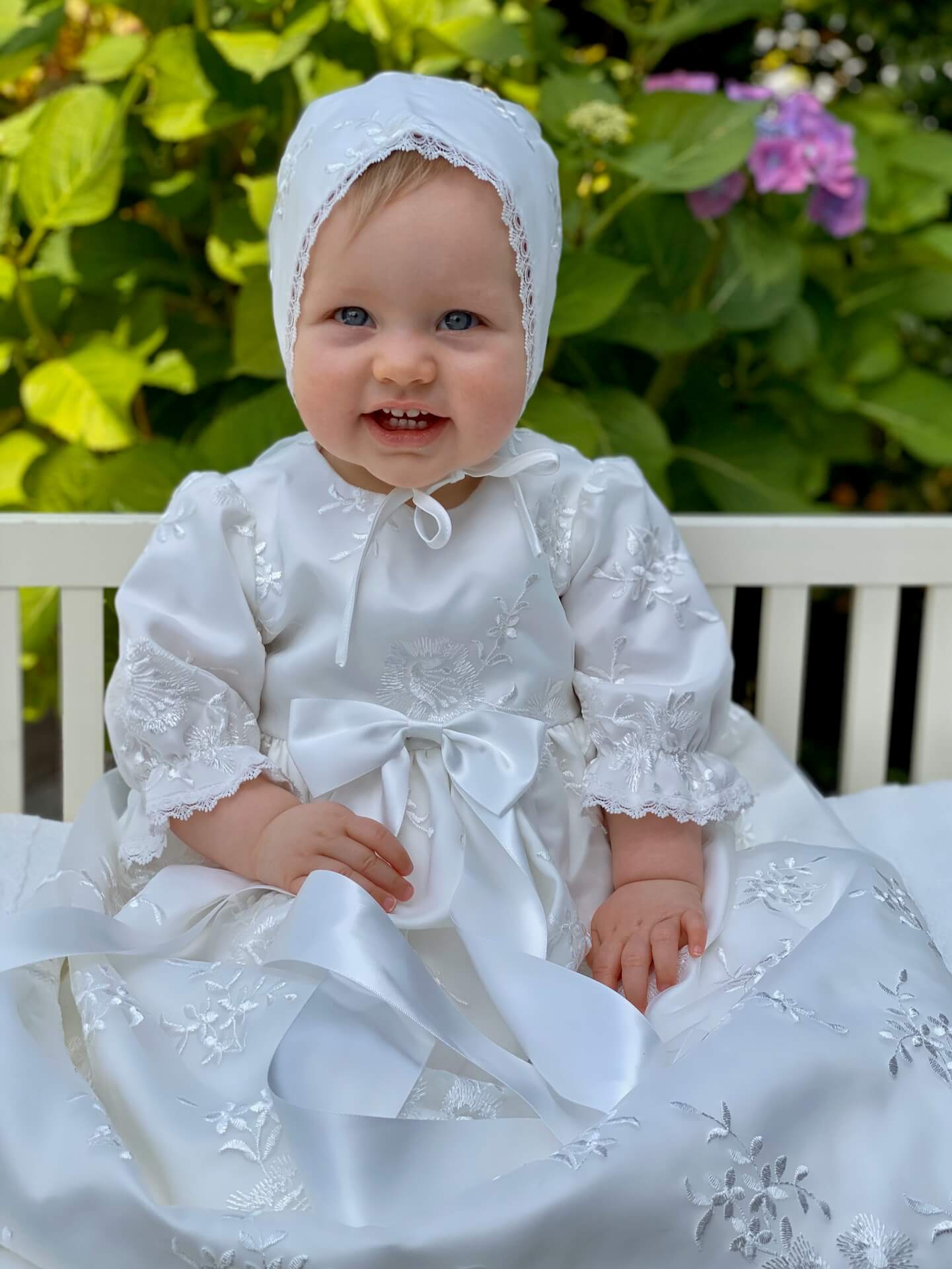 I think we found the sweetest christening gown with bonnet to Allessia! I've been looking for a gown for a long time, and actually find it difficult to find a ready-made christening gown online. This one was absolutely perfect and like sewn to her, and the quality of the dress was absolutely top. It's important on such a big day that everything just fits.