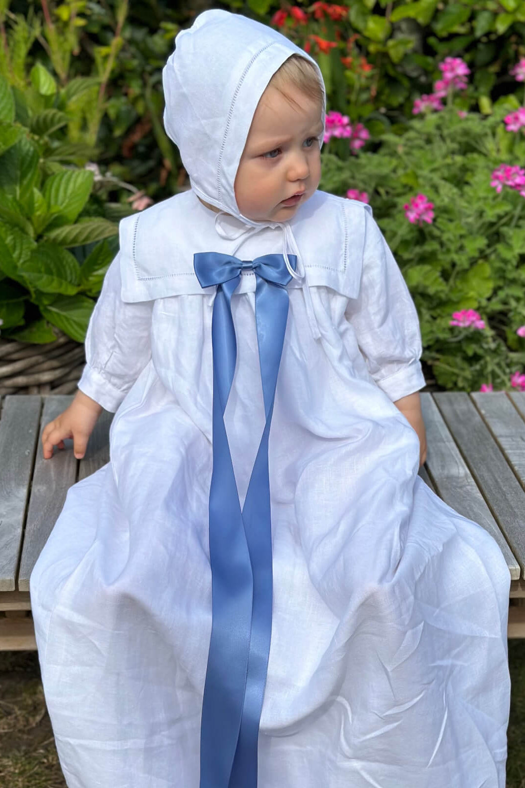 Discover our beautiful linen christening gowns. Natural pieces to be cherished for your baby's christening and can be handed down as an heirloom for generations to come.