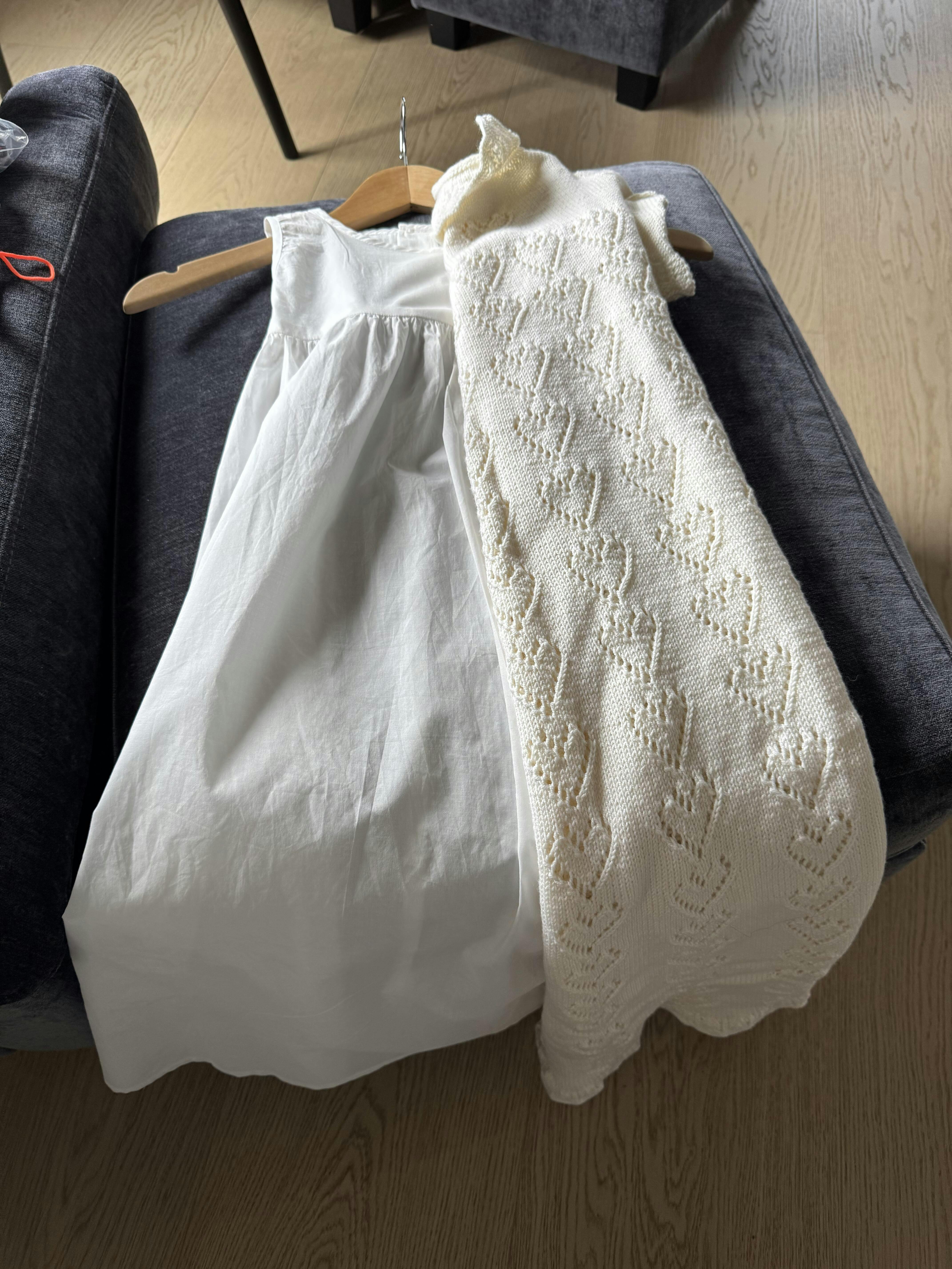 Våra dopkläder har nordiska storlekar, så våra klänningar är vanligtvis lite stora. Vi rekommenderar att du hellre väljer den mindre storleken om du är osäker.